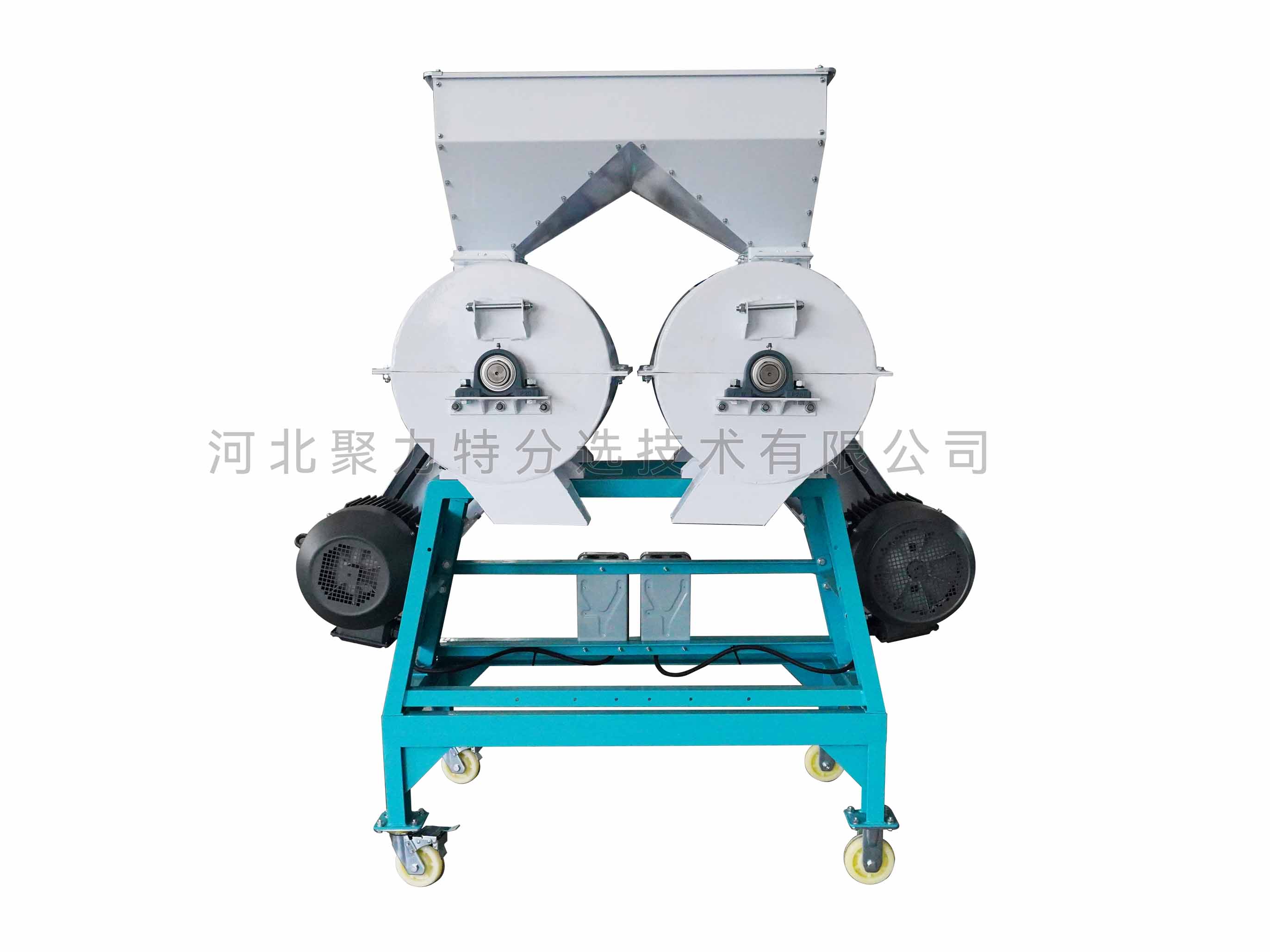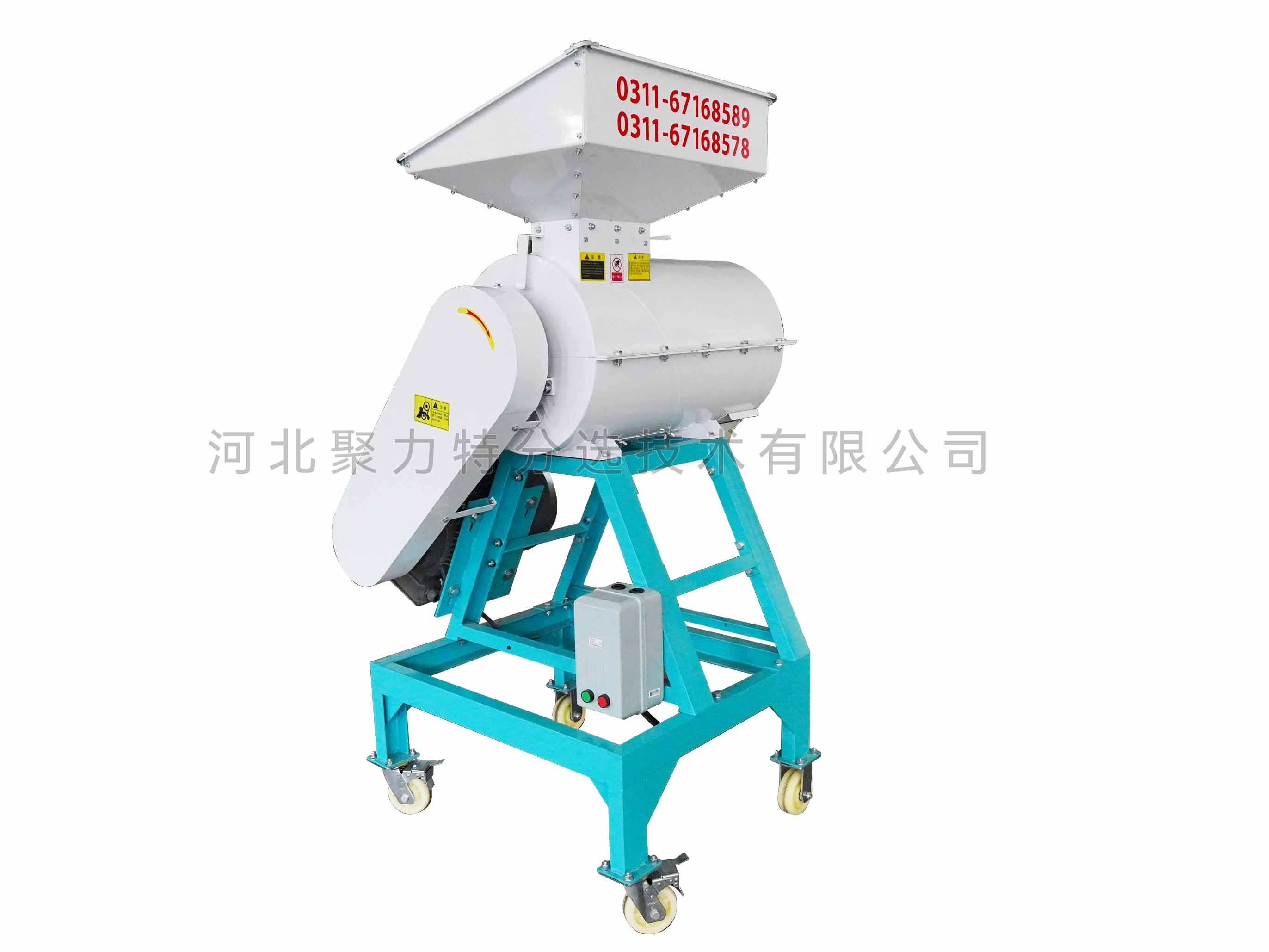 該機(jī)是以柔性碾搓為主,通過合理的轉(zhuǎn)速設(shè)計(jì)和調(diào)整機(jī)筒內(nèi)的物料存量從而控制物料之間的揉搓力,將附著在物料上的殼、芒、翼、毛、刺、尖等清除干凈。