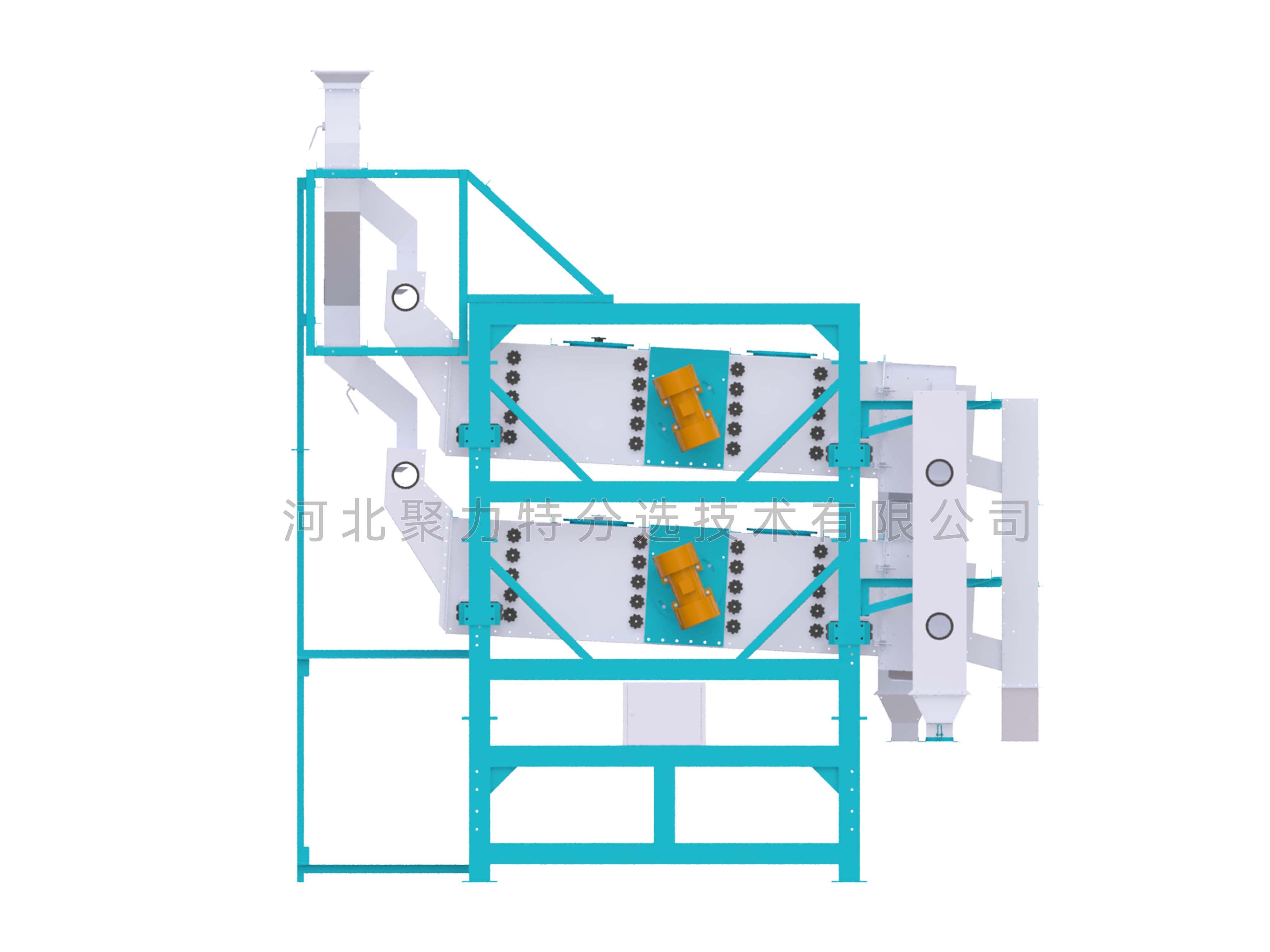 1、產(chǎn)量大:在5XFJ-20Y分級篩的基礎上,將篩箱疊加布置,并配置相應的分料裝置實現(xiàn)每個篩箱的均勻喂料及散料;